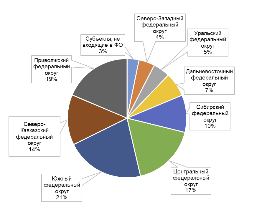 Более половины российских растениеводческих и животноводческих организаций находятся в ЦФО, ЮФО и СКФО.