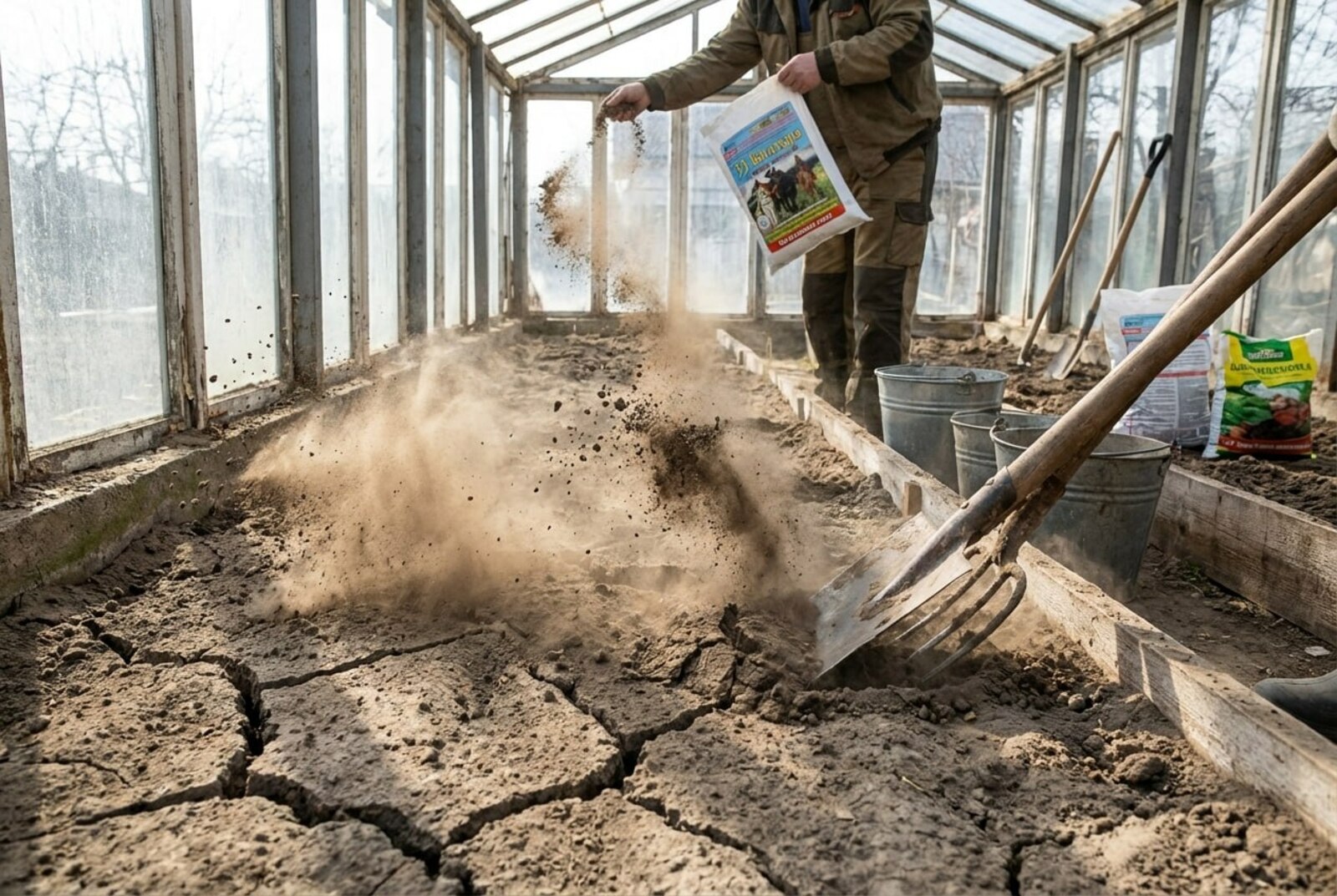 Если почва в теплице превратилась в пыль, это говорит о её глубоком истощении и потере способности удерживать влагу. Даже после полива вода не проникает внутрь, а растения не могут развивать корни, слабеют и теряют иммунитет.