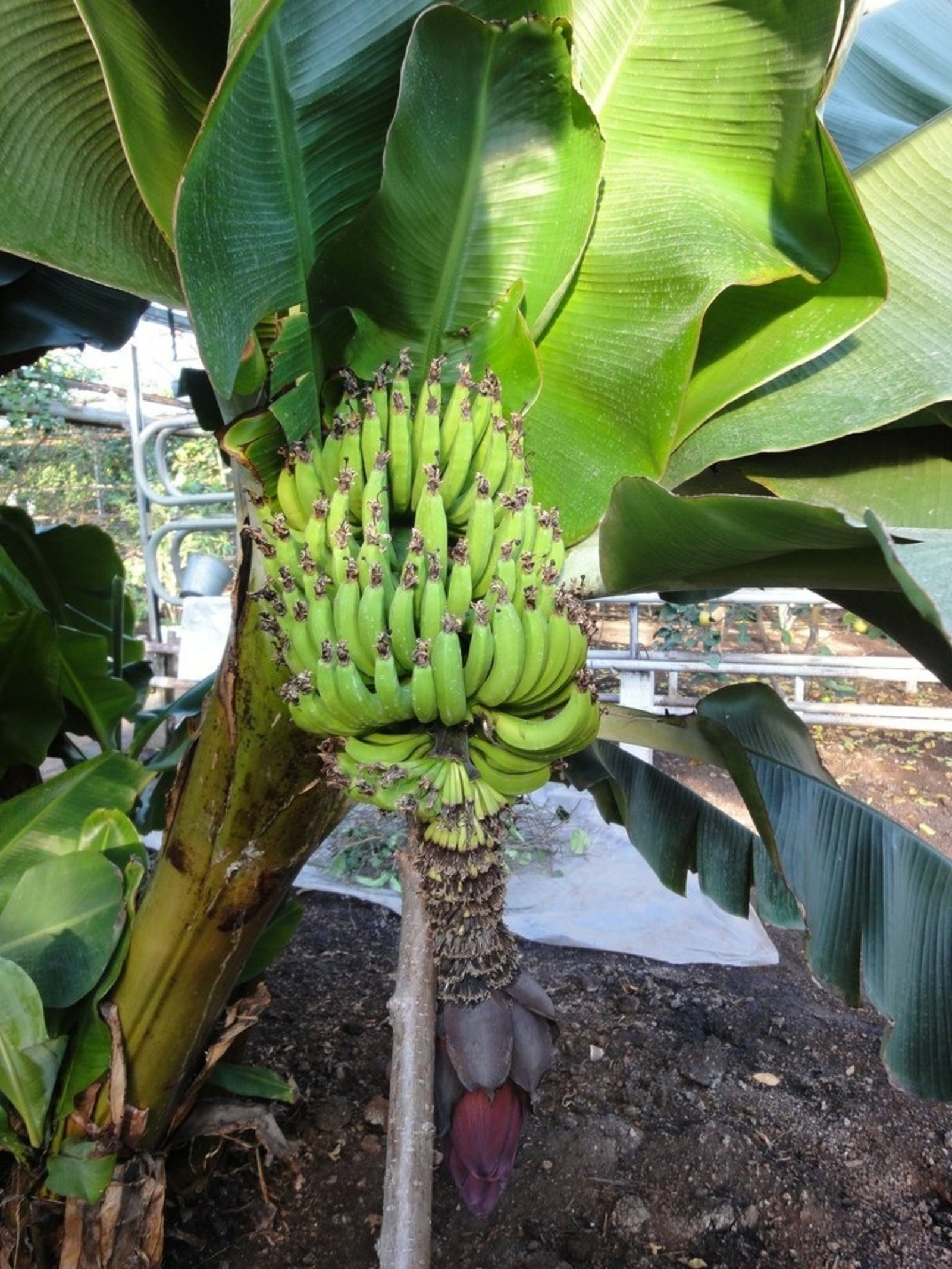 Кроме карликовых съедобных бананов, в лимонарии есть ещё и гигантские бананы. Они, кстати, тоже съедобные. Но плодов, к сожалению, мы здесь не увидим, так как высоты элементарно не хватает. Быстро они растут.